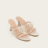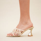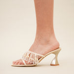 A double-strap sandal with cascading beaded fringes. The 'Cascade de Promesse' will jiggle with you as you go!
