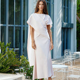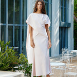 Designed to sit high on the waist, the 'Vera' is a bias-cut skirt crafted in a light crepe material with an asymmetrical hem.