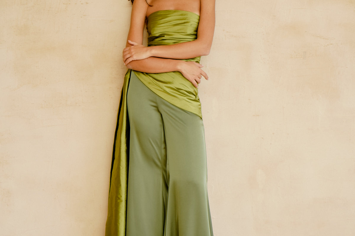 A staple piece for any occasion. The 'Tanya' pants feature a high-rise waist with a fitted cut and flared legs.