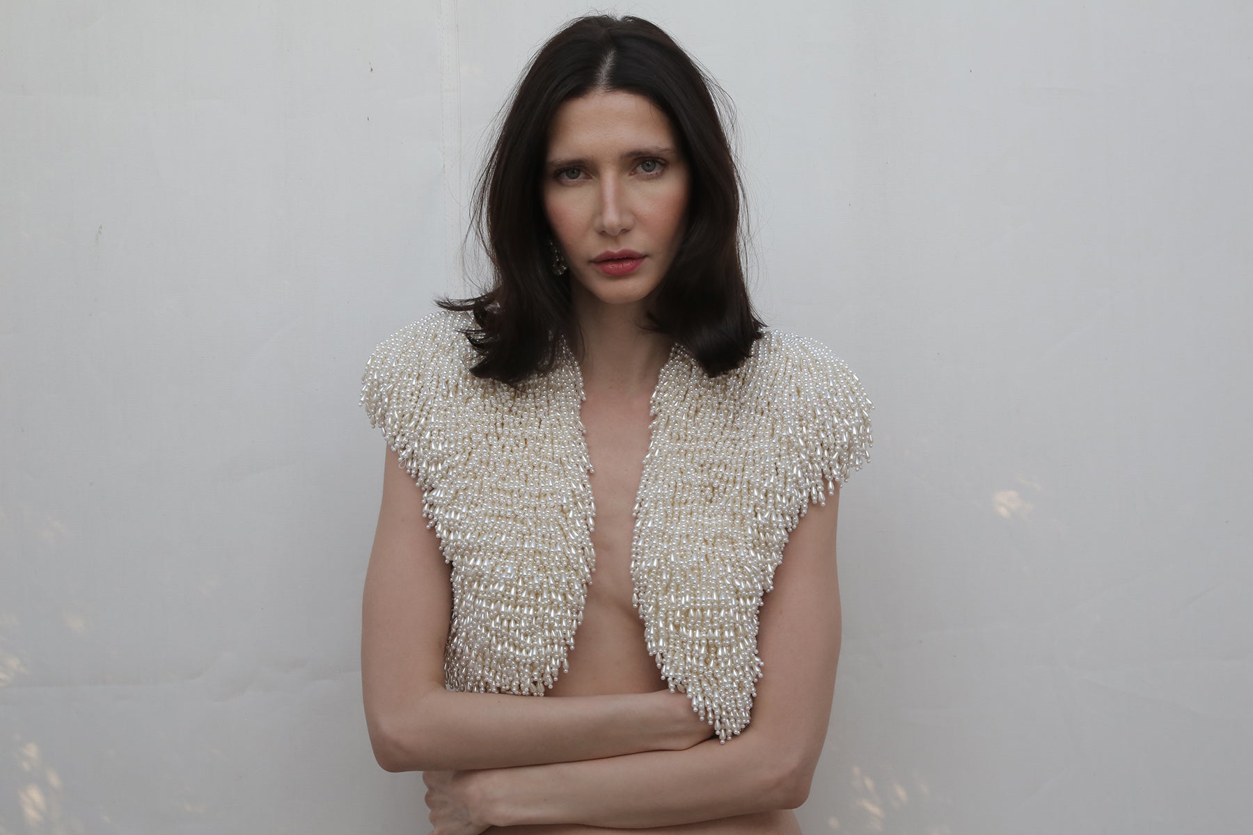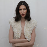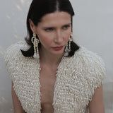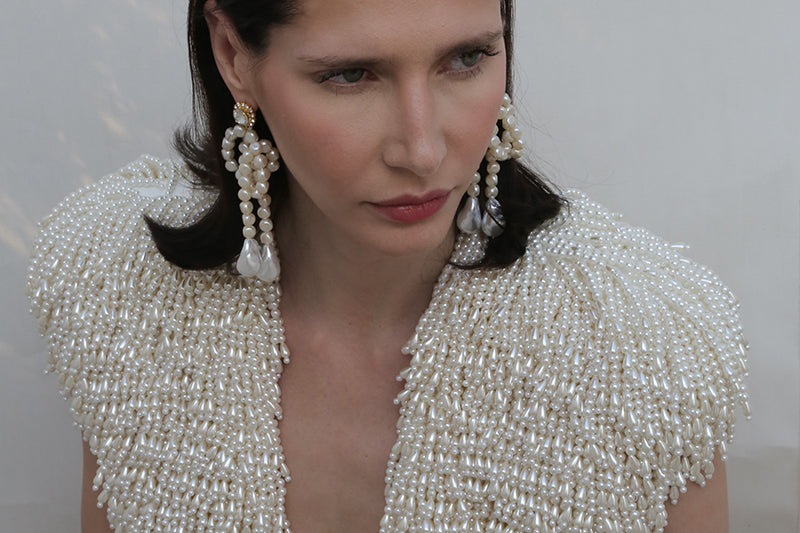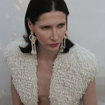 Make the ultimate statement with the 'cascade de caresse' piece. A cropped vest entirely adorned with cascading beaded fringes that bounce with you as you move. It pairs perfectly with our 'lula' jumpsuit.